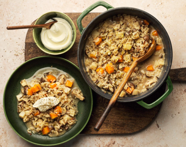 Riz sauvage aux champignons lardons et butternut